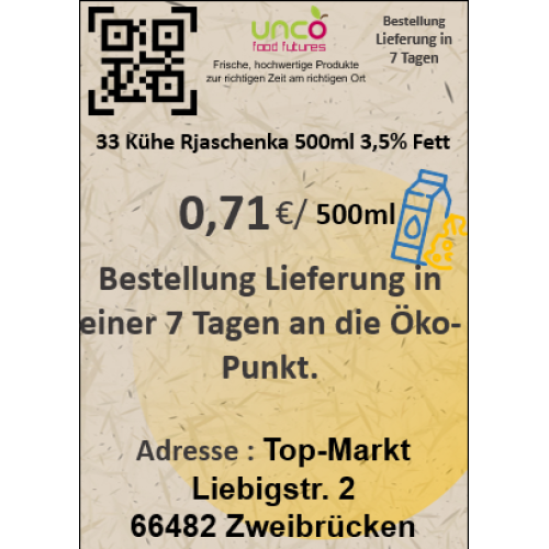 33 Kühe Rjaschenka 500ml 3,5% Fett