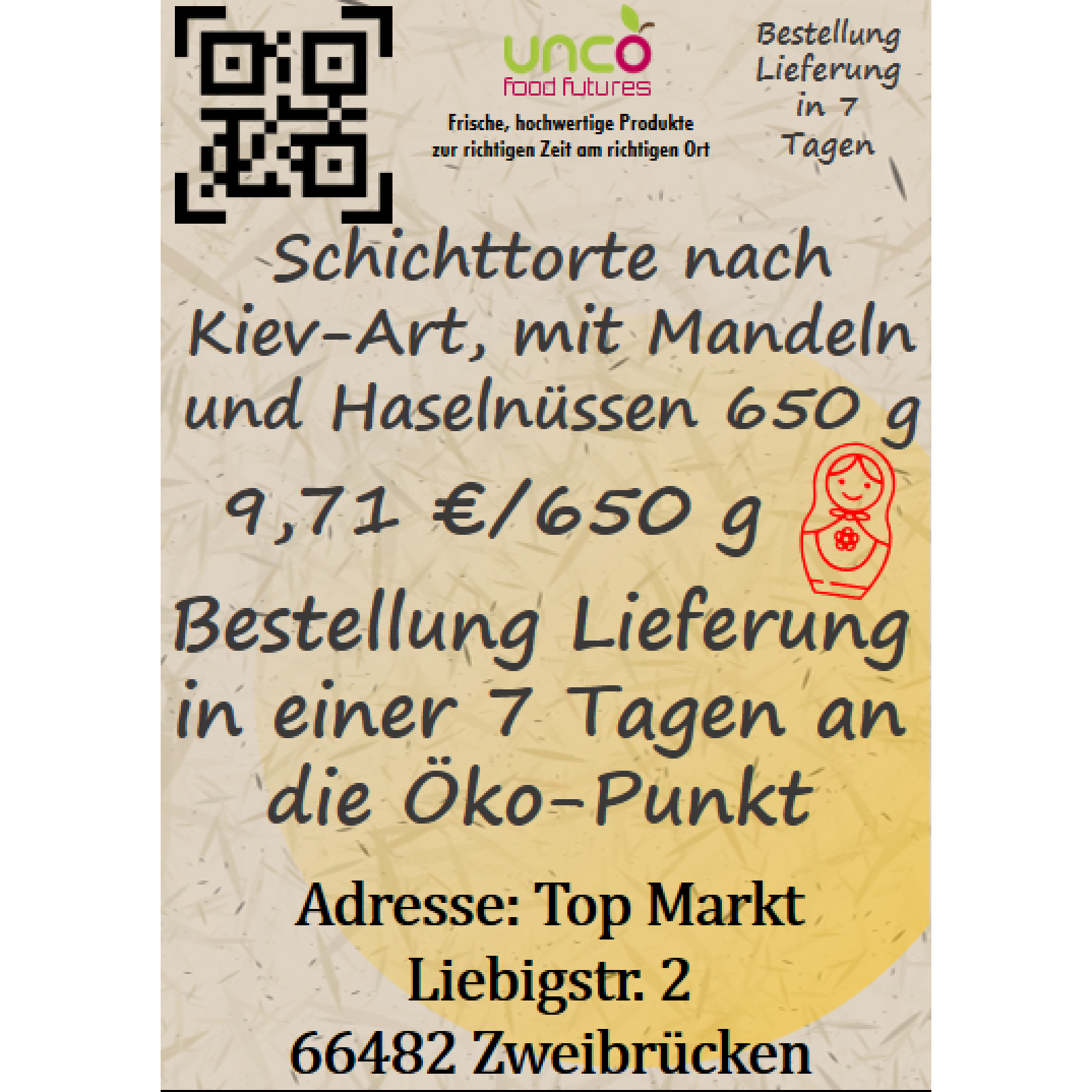 Schichttorte nach Kiev-Art, mit Mandeln und Haselnüssen 650 g