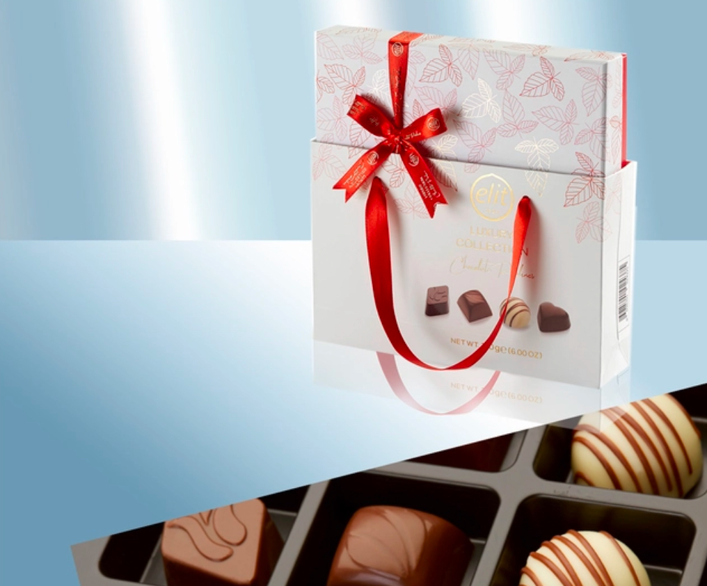 Schokopralinen “Luxury Collection Red Color” mit verschiedener Füllung, in Geschenkverpackung mit roter Schleife und Geschenktüte 170 g
