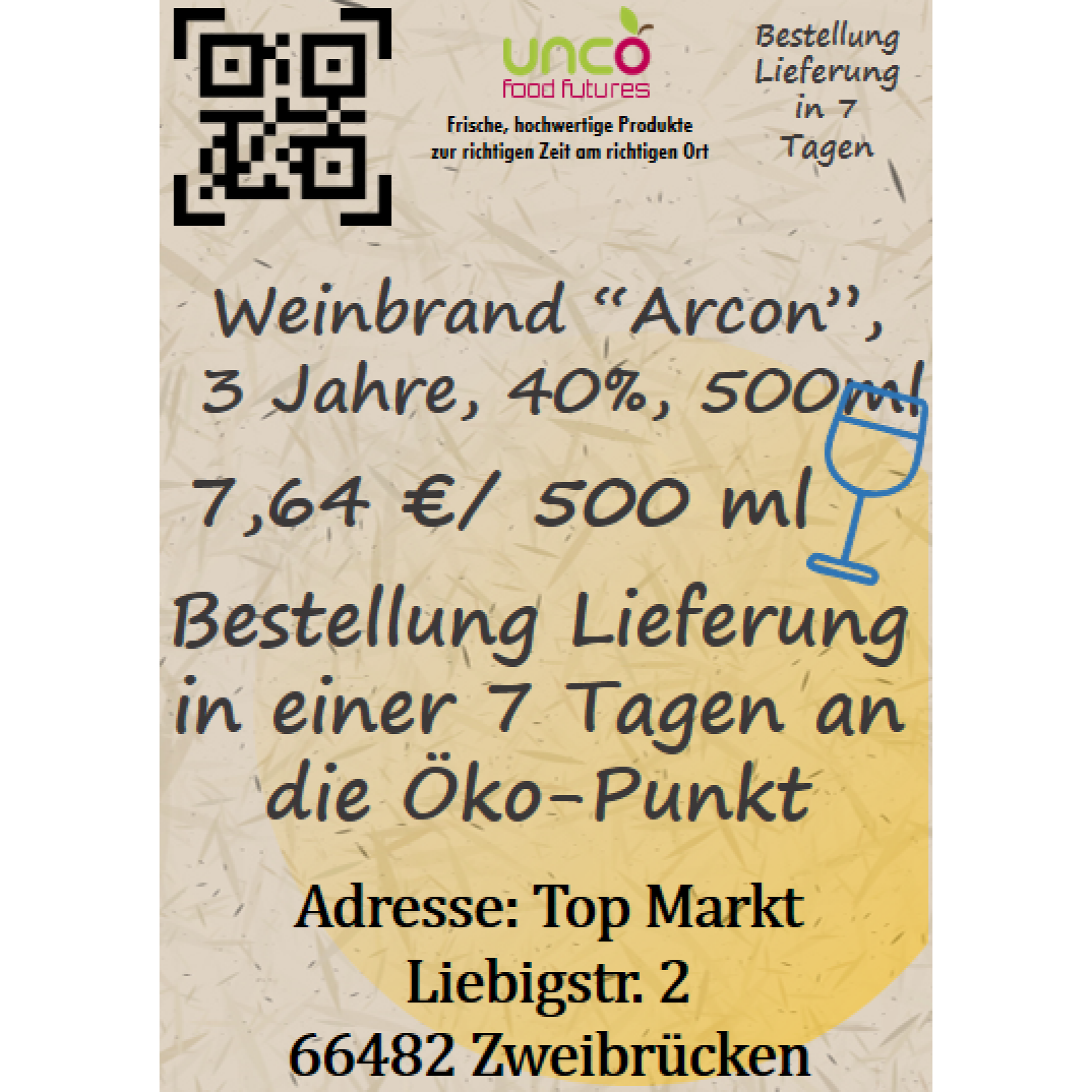 Weinbrand “Arcon”, 3 Jahre, 40%, 500ml