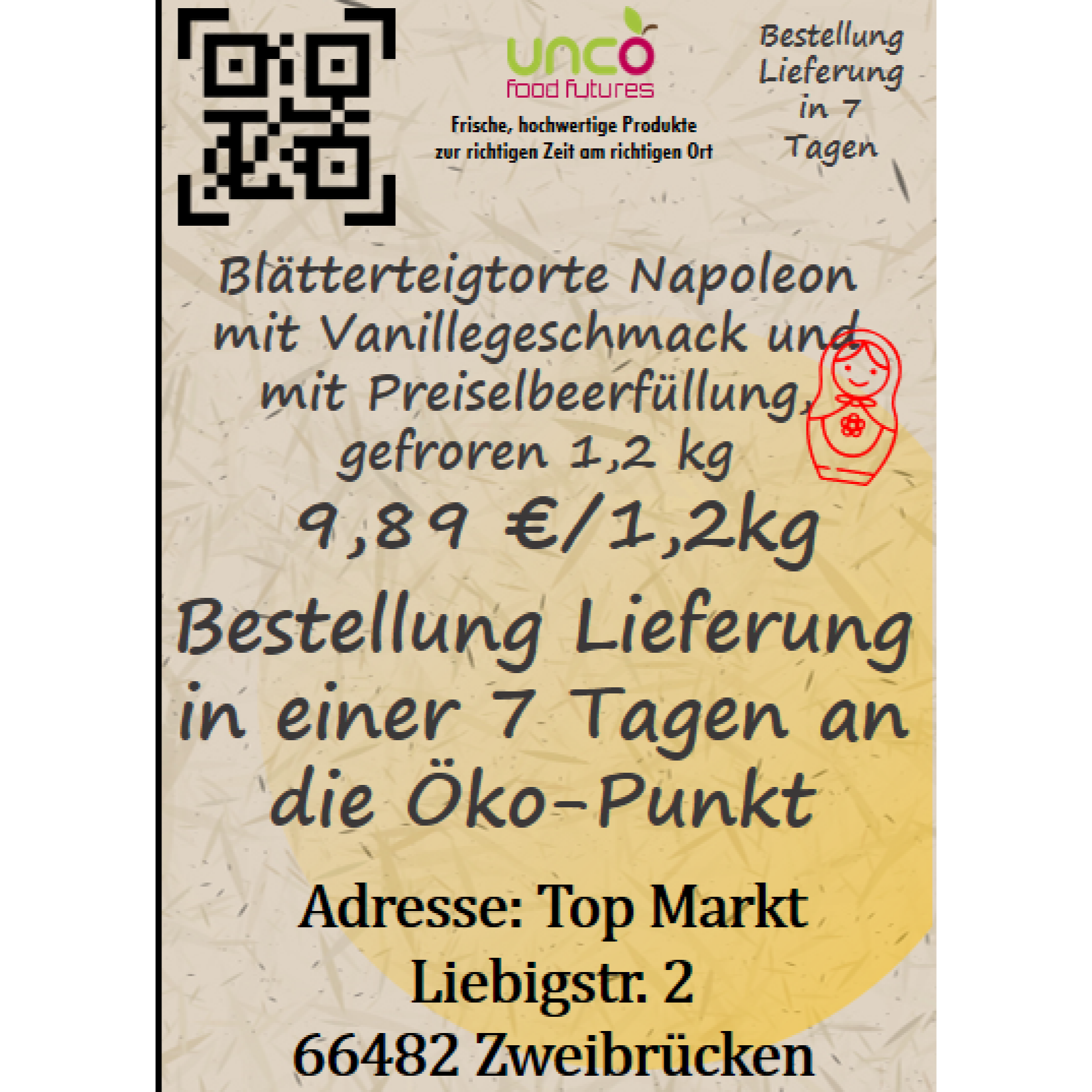 Blätterteigtorte “Napoleon” mit Vanillegeschmack und mit Preiselbeerfüllung, gefroren 1,2 kg