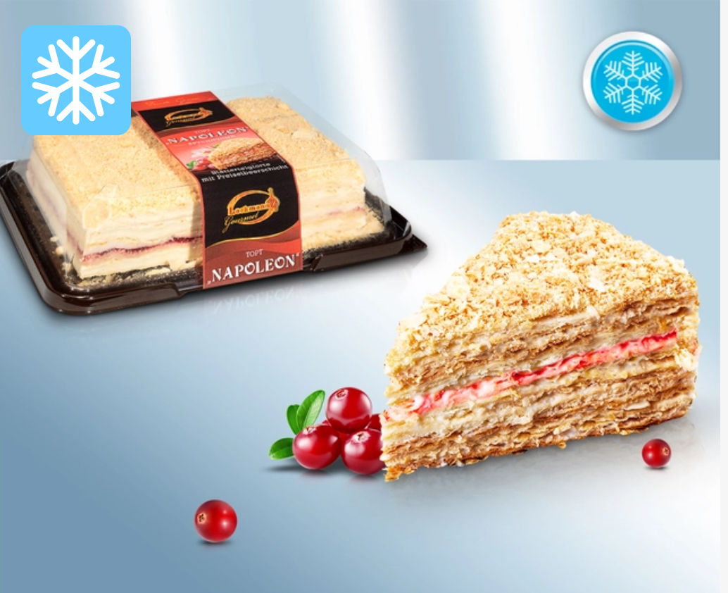 Blätterteigtorte “Napoleon” mit Vanillegeschmack und mit Preiselbeerfüllung, gefroren 1,2 kg