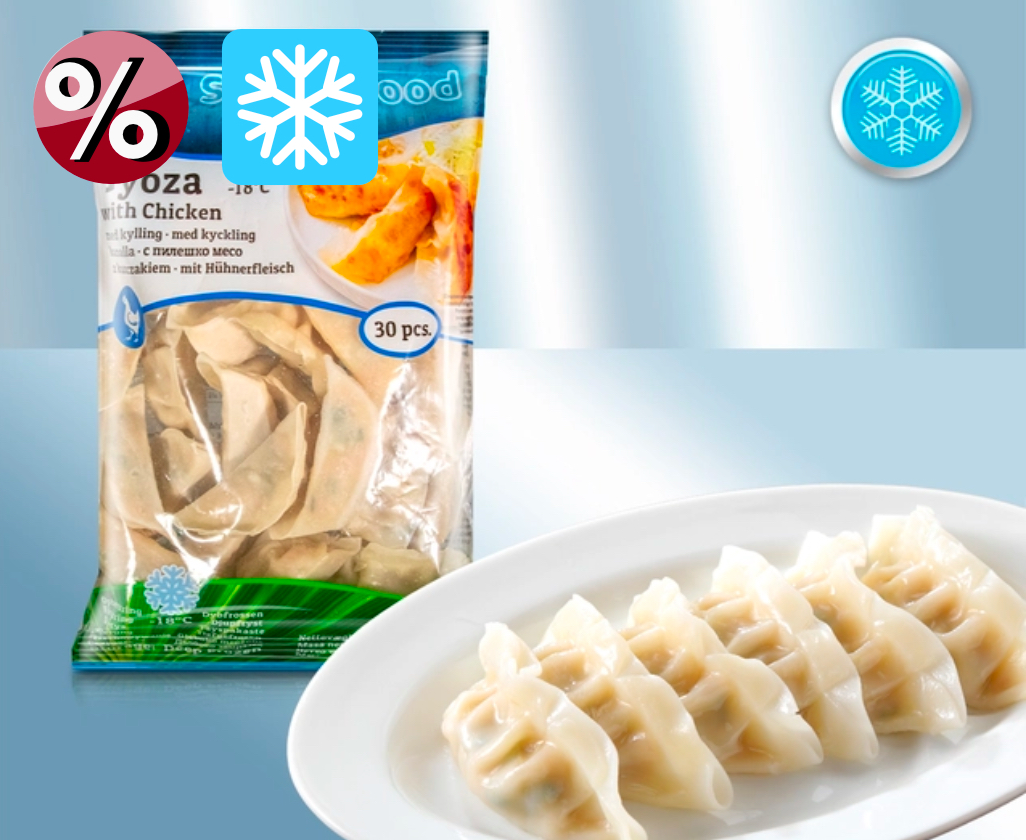 Teigtaschen auf japanische Art “Gyoza”, aus Reismehl, mit Hähnchenfleisch und Weißkraut 600 g